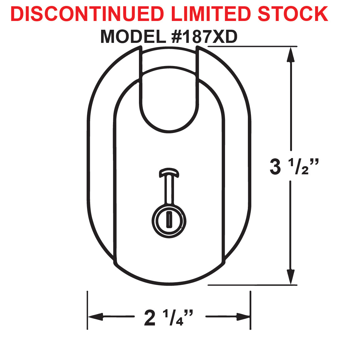 - MasterLock 型号 # 185D(尺寸约为 2 英寸宽 x 3 英寸高)已停产,不再可用。